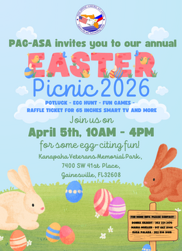 The first meeting was held on Easter Sunday of that year, at Westside Park. The official name chosen for the organization was PAGASA, which stands for Philippines-American Association of Gainesville And Surrounding Areas. PAGASA is the word “HOPE” when translated into English.